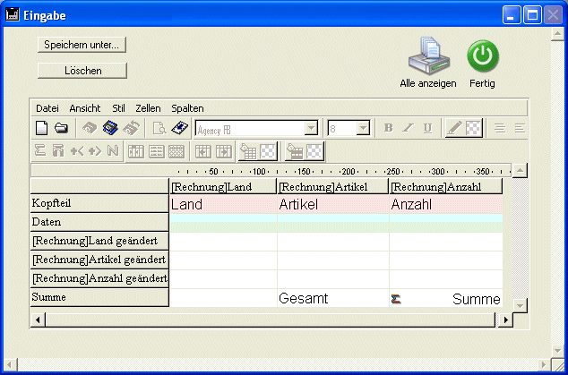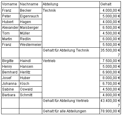 Dies ist der Standardmodus. Er zeigt Datensätze als Liste mit Umbrüchen an der Stelle, wo Summen berechnet wurden. Hierzu ein Beispiel: