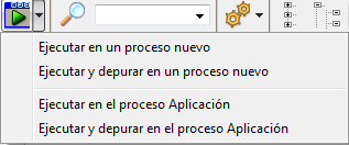 Cada ventana del editor de métodos tiene un botón que permite lanzar la ejecución del método actual. Utilizando el menú asociado a este botón, puede seleccionar el tipo de ejecución: