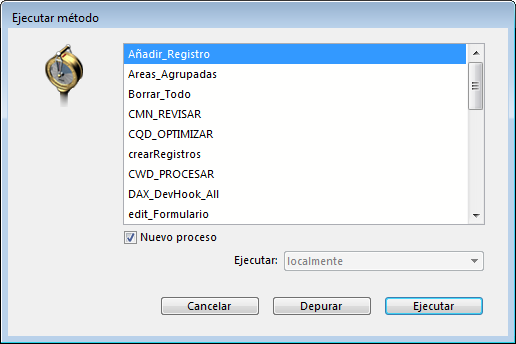 • desde la caja de diálogo de ejecución de métodos (métodos de proyecto únicamente).
