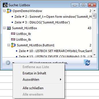 Mit der Operation "Ersetze in Inhalt" können Sie in den gelisteten Objekten (siehe Abschnitt Suchergebnis) eine Zeichenkette durch eine andere ersetzen. Wählen Sie dazu im Menü Optionen am unteren Rand den Befehl Ersetze in Inhalt: