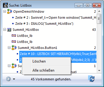 - Wurde eine von der Operation "Ersetze in Inhalt" betroffene Methode bzw. ein Formular bereits vom gleichen 4D Programm bearbeitet, werden sie direkt im offenen Editor geändert. Es erscheint keine Warnung. Auf diese Weise geänderte Formulare und Methoden werden nicht automatisch gesichert: Sie müssen zum Bestätigen explizit die Befehle Sichern oder Alle Sichern einsetzen.
