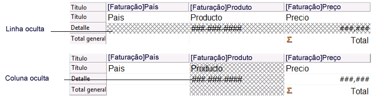 Nota: não pode ocultar uma linha ou coluna em um relatório em tabela cruzada.