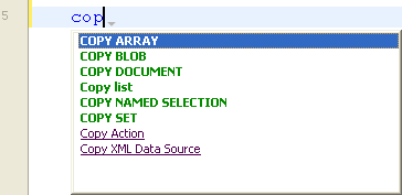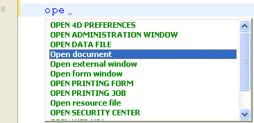 El editor de métodos tiene una función de "entrada predictiva". 4D muestra automáticamente las sugerencias basado en los primeros caracteres digitados.