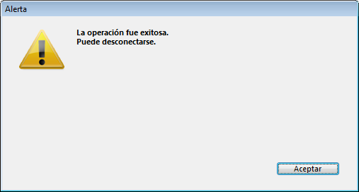 ALERT("La operación fue exitosa.\rPuede desconectarse.")