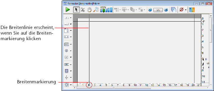 Hinweis: Um die Einstellung der Breitenmarkierung zu erleichtern, können Sie die Maßeinheiten des Lineals ändern. Hierzu wählen Sie im Menü Formular den Befehl Lineal festlegen.