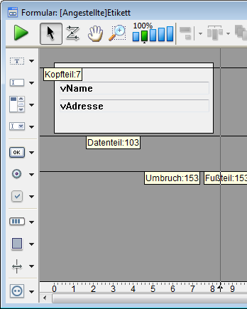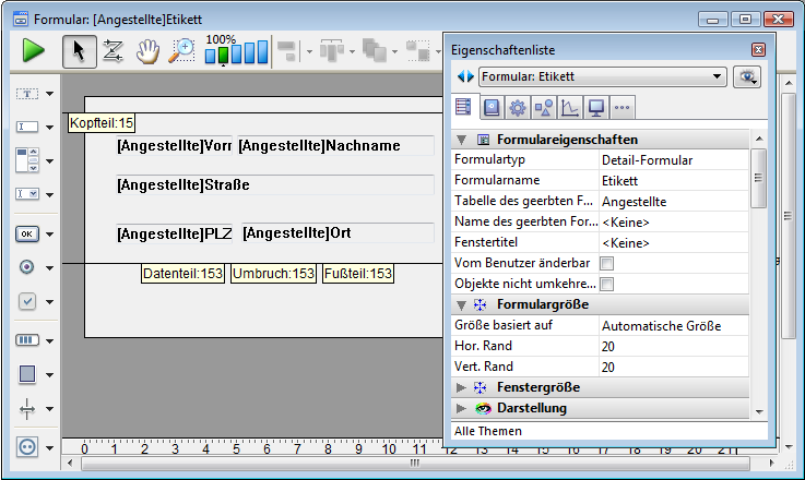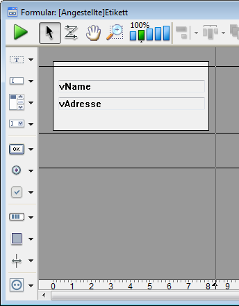 Sie erzeugen Etiketten entweder mit dem Etiketteneditor oder mit einem eigenen Listenformular. Meist reicht der Etiketteneditor aus. In manchen Fällen ist jedoch ein Formular besser geeignet, denn hier können Sie in Etiketten Variablen einsetzen und alle grafischen Hilfsmittel des Formulareditors nutzen.