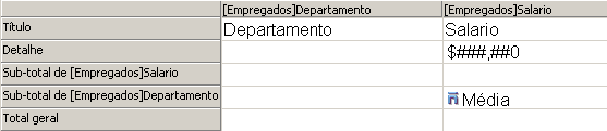 Por exemplo, se deseja representar graficamente ou salário médio por departamento, deve criar um relatório rápido com dois colunas, Nome do departamento e Salário, e uma fila subtotal para calcular a média do Salário: