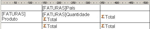 Em modo tabela cruzada, 4D Chart utiliza as duas fontes de dados e a célula de valor; a última fila e a última coluna são ignoradas. Por exemplo, se deseja mostrar a quantidade de vendas por país para um conjunto de produtos, pode definir o seguinte relatório: