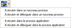 Chaque fenêtre de l’éditeur de méthodes comporte un bouton permettant de lancer l’exécution de la méthode courante. A l’aide du menu associé au bouton, vous pouvez sélectionner le type d’exécution :