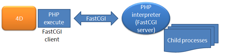 4D provides a PHP interpreter compiled in FastCGI, client-server type communication protocol between an application and a PHP interpreter.