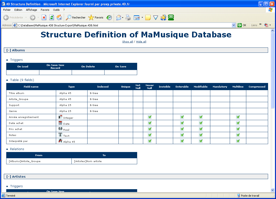 Une boîte de dialogue vous permet de visualiser directement le résultat de l’export dans le navigateur par défaut. Les définitions de structure au format HTML ont l’apparence suivante :