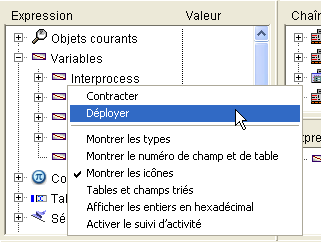 Note : Vous pouvez modifier les variables et les champs de type Chaîne, Texte, numérique (Entier, Entier long, Réel), Date et Heure, c'est-à-dire les variables et les champs dont la valeur peut être saisie au clavier. Pour le type Entier vous pouvez utiliser indifféremment la notation décimale ou hexadécimale (par exemple, pour 256, vous pouvez taper ‘256’ ou ‘0x100’).