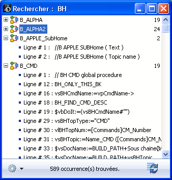 Vous pouvez double-cliquer sur une ligne de la fenêtre pour afficher l’objet trouvé dans l’éditeur correspondant. Si vous effectuez successivement plusieurs recherches, chacune provoque l’ouverture de sa propre fenêtre de résultat.