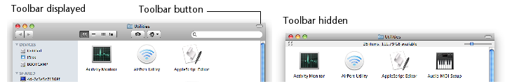 Auf Mac OS kann 4D v12 die Schaltfläche zur Verwaltung der Werkzeugleiste anzeigen. Über diese Standardschaltfläche können Sie die Werkzeugleiste des Fensters ein- und ausblenden: