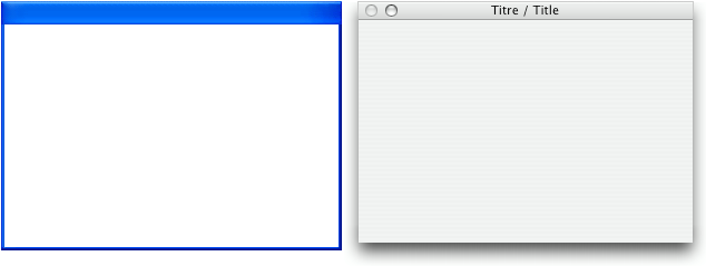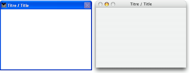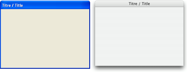 Im folgenden sehen Sie die verschiedenen Fenstertypen. Die Darstellung unter Windows steht links, die Darstellung auf Macintosh rechts.