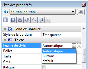 Une feuille de style spéciale est disponible dans la Liste de propriétés : Automatique :