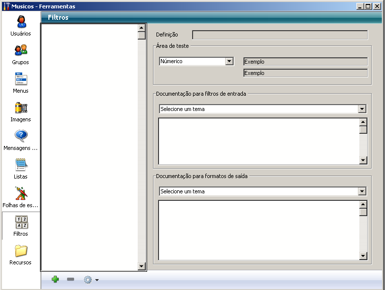 Também é possível criar formatos de saída que correspondam a filtros de entrada e usar estilos para os instalar. É possível criar filtros de entrada ou formatos de saída na página Filtros da caixa de ferramentas de 4D:
