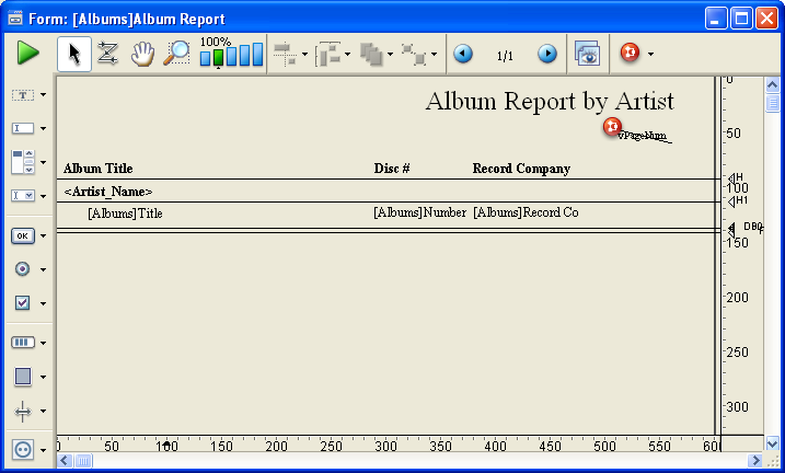 ヘッダー (H) マーカーをページの一番上に配置し、フィールドやその他のレポート要素をその下に配置します。
