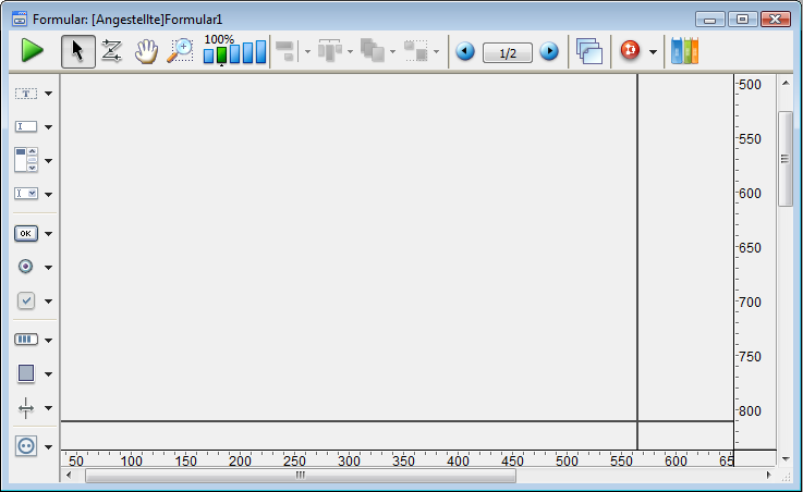 Jedes Formular kann bis zu 3 qm groß sein. Über die Rollbalken können Sie nicht angezeigte Teile des Formulars in Sicht bringen. Zur Anzeige auf dem Bildschirm kann Ihr Formulardesign den gesamten Bereich verwenden. Durch Scrollen können Sie jedes Element ansehen, das Sie ins Formular setzen.