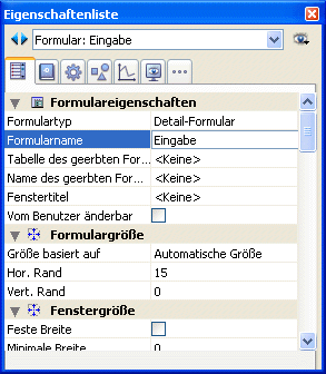 1. Zeigen Sie die Formulareigenschaften in der Eigenschaftenliste an