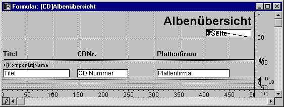 Ziehen Sie die Steuerlinie H für den Kopfteilbereich an den oberen Rand der Seite und ordnen die Datenfelder und andere Elemente des Bericht darunter an.