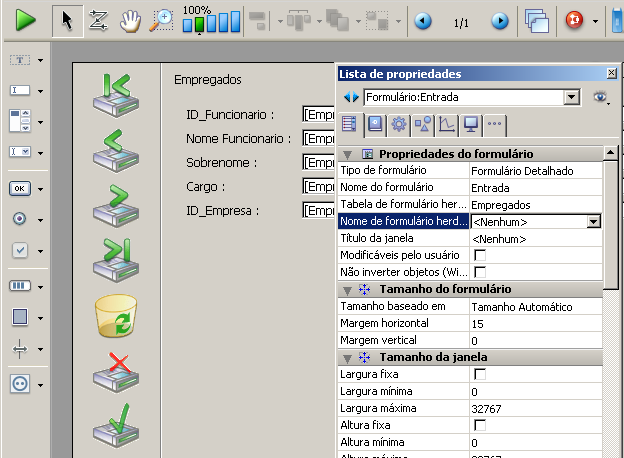 Para não utilizar mais um formulário como formulário herdado, selecione a opção <Nenhum> na Lista de propriedades.