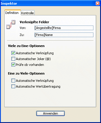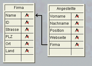 Die Verknüpfung vom Feld [Angestellte]‘Firma zum Feld [Firma]Name hat folgende Eigenschaften: