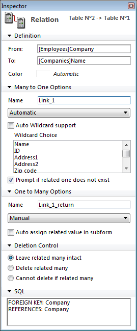 SET FIELD RELATION([Empregados]Empresa;2;0) `muda a relação Muitos a Um a manual
