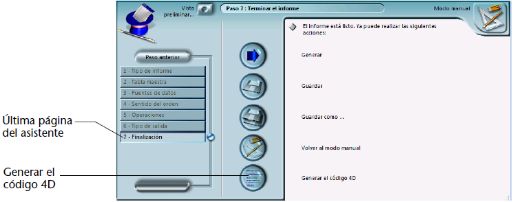 Incluso si crea manualmente el informe rápido, puede utilizar esta función mostrando la etapa “Finalización” del asistente.