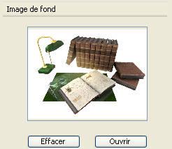 Notez la zone "Image de fond" à droite de la fenêtre. - Pour ouvrir directement une image stockée sur votre disque, cliquez sur le bouton Ouvrir.