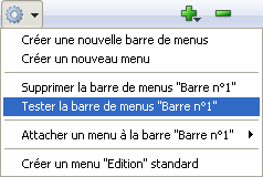 Pour cela, il vous suffit de sélectionner la barre de menus et de choisir la commande Tester la barre de menus “Barre n°N” dans le menu contextuel ou le menu d’options de l’éditeur.
