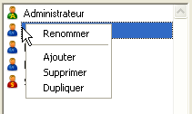 Pour supprimer un utilisateur, sélectionnez-le puis cliquez sur le bouton de suppression ou utilisez la commande Supprimer du menu contextuel.
