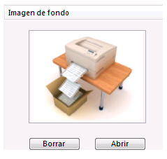 Note el área "Imagen de fondo" a la derecha de la ventana. - Para abrir directamente una imagen almacenada en su disco, haga clic en el botón Abrir.