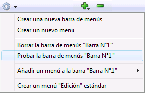 Para hacer esto, es suficiente con seleccionar la barra de menús y elegir el comando Probar la barra de menús “Barra #X” en el menú contextual o en el menú de opciones del editor.