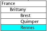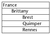 Si estos arrays están representados jerárquicamente, la línea "Quimper" no se mostrará en la segunda línea, sino en la cuarta, debido a las dos líneas de ruptura añadidas:
