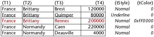 Independientemente de cómo los datos se muestran en el list box (jerárquicamente o no), si quiere cambiar la línea que contiene "Quimper" a negrita, debe utilizar la instrucción Style{2} = bold. Sólo se tiene en cuenta la posición de la línea en los arrays.