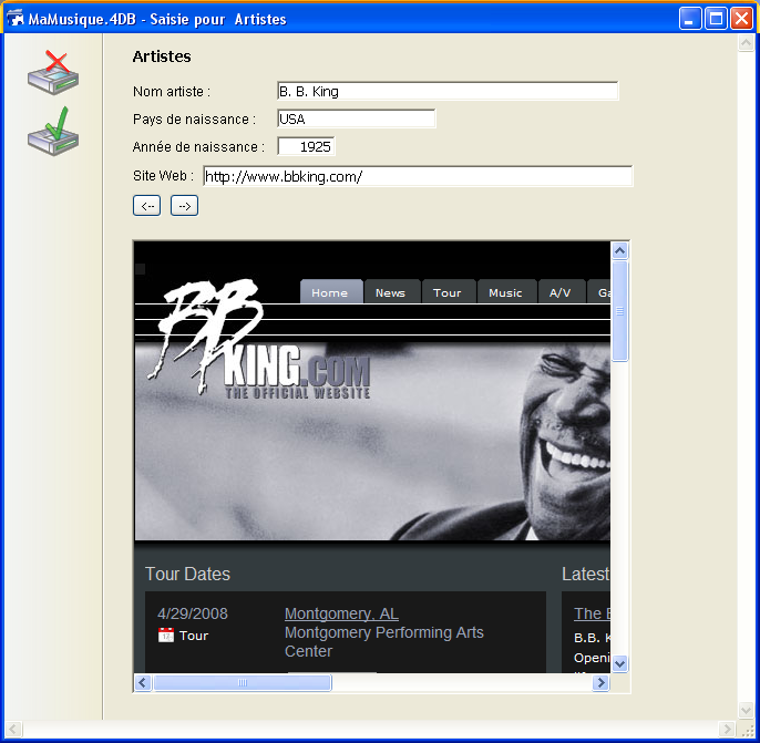 Les zones Web peuvent afficher tout type de contenu Web à l’intérieur même de votre environnement 4D : pages HTML au contenu statique ou dynamique, fichiers, images, Javascript, Flash, PDF... et même des documents MS Office (sous Windows lorsque la suite MS Office est installée). L'image suivante montre une zone Web incluse dans un formulaire et affichant une page HTML :
