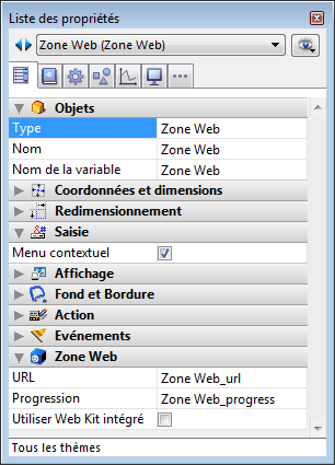 la variable "Progression du chargement" Par défaut, ces variables sont nommées respectivement nomZone_url et nomZone_progress. Vous pouvez modifier ces noms comme vous le souhaitez. Les variables sont accessibles dans la Liste des propriétés :