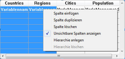 • Die Variablen der Spalten werden zum Definieren der Hierarchie verwendet. Sie ersetzen alle bereits deklarierten Variablen.