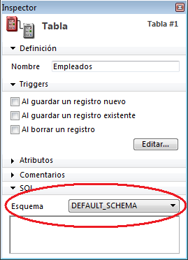 Nota: las tablas sistema se asignan a un esquema particular llamado SYSTEM_SCHEMA. Este esquema no puede modificarse o borrarse. No aparece en la lista de esquemas mostrada en el inspector de tablas. Es accesible en modo lectura únicamente por todos los usuarios.