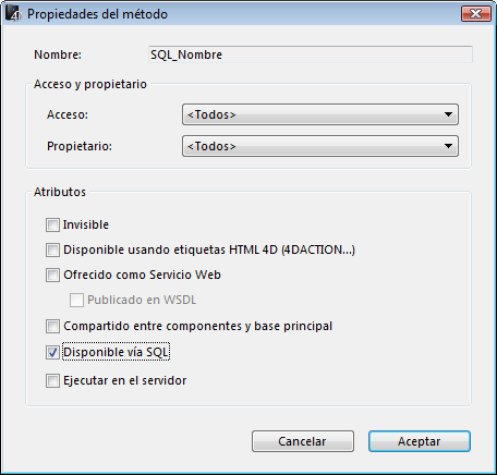 Una propiedad de seguridad se ha añadido para los métodos proyecto 4D: Disponible vía SQL: