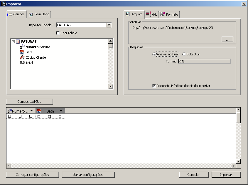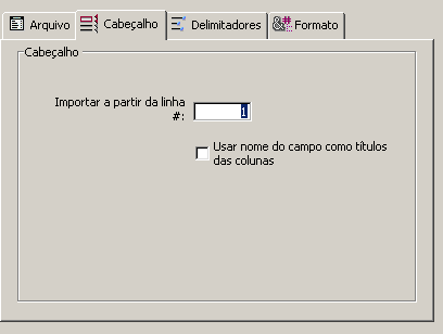 5. (Opcional) Defina as outras opções de importação utilizando as páginas Encabezado, Delimitadores, Preenchimento, XML e/ou Formato.