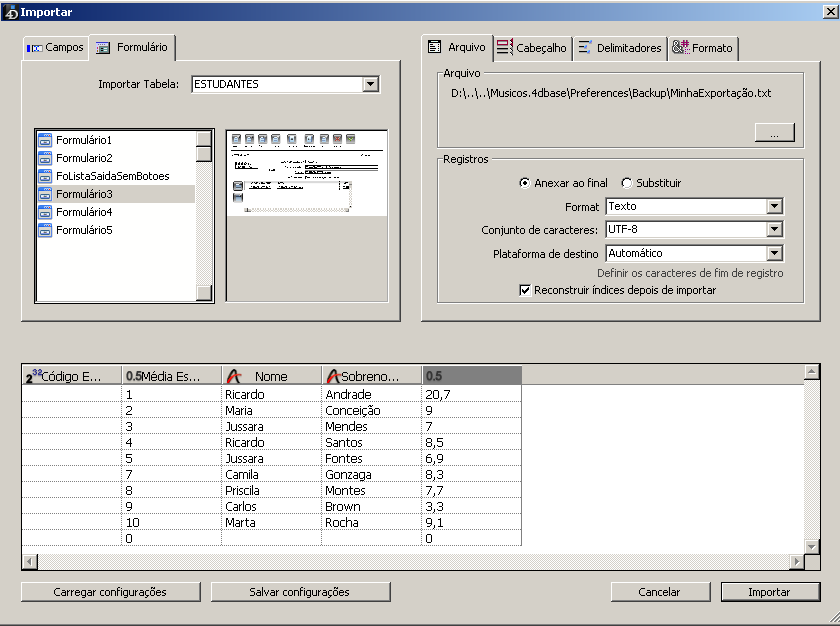 • Importar dados utilizando um formulário.