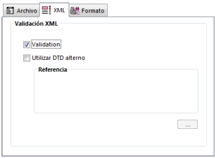 Si el DTD del documento importado no está incluido en el documento mismo, pero en un archivo separado, o si quiere utilizar otro DTD para validar el documento, marque la opción Utilizar otro DTD e indique el archivo que contiene el DTD utilizando el botón [...].