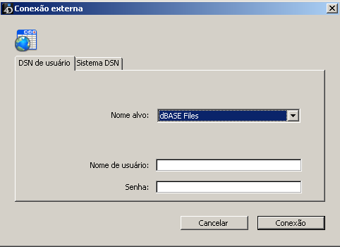 Aparece a caixa de diálogo de conexão ODBC::