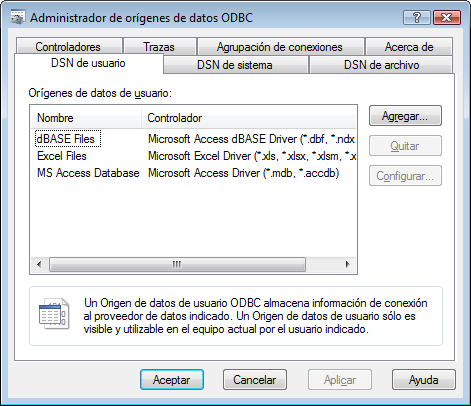 El protocolo ODBC (Open DataBase Connectivity) es una interfaz que permite a las diferentes aplicaciones comunicarse entre ellas utilizando el lenguaje SQL. Una fuente de datos ODBC es una “ventana” abierta permanentemente en un documento que pertenece a una aplicación, incluso cuando la aplicación no está abierta. Muchas aplicaciones (bases de datos, hojas de cálculo, manejadores de datos, etc.) permiten publicar datos como una fuente ODBC utilizando un driver ODBC específico.