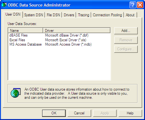 ODBC ソースからのデータ読み込みに関する概念は、他のタイプのデータを読み込む場合と同じです (ファイルからデータを読み込む参照)。ただし、ODBC ソースを選択するために中間的なダイアログボックスを使用する点が異なります。