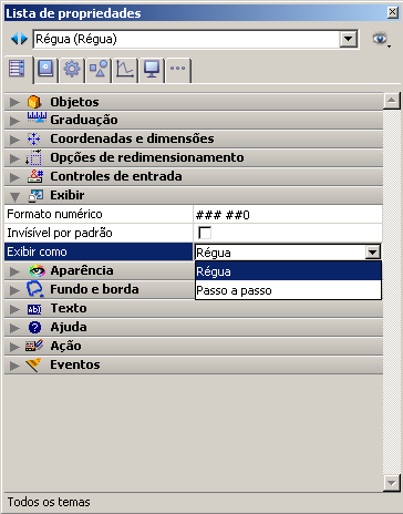 • Para as réguas, estas variantes são definidas através da propriedade Exibir como do tema "Exibir" da Lista de propriedades: