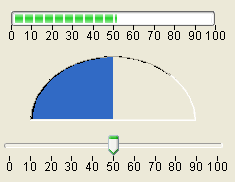 ダイアル、進捗インジケーター、ルーラーはフォームエディターのオブジェクトバーのボタンから利用できます。さらに"進捗インジケーター" (サーモメーター) と "ルーラー" オブジェクトには数種のバリエーションがあります。