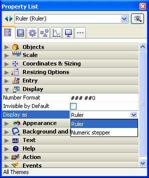 • ルーラーの場合、プロパティリストの"表示"テーマ内、表示タイププロパティを使用してバリエーションを設定します: